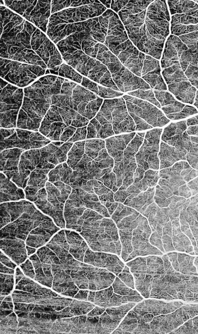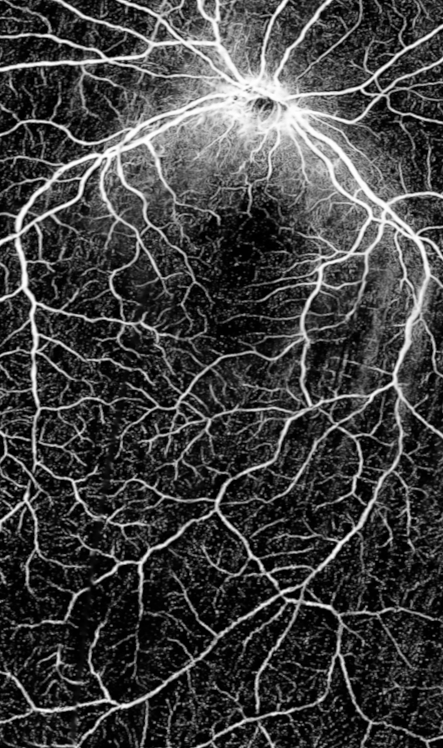I use an optical coherence tomography (OCT) machine to image the vessels of my own retina. Recontextualized in an artistic context, I observe the symbolic and aesthetical properties of these images. Mainstream culture states that the eyes are a window to the soul. Meanwhile latest research in ophthalmology focuses on uncovering systemic diseases through the retinal vessels [20]. What are my eyes a window to?